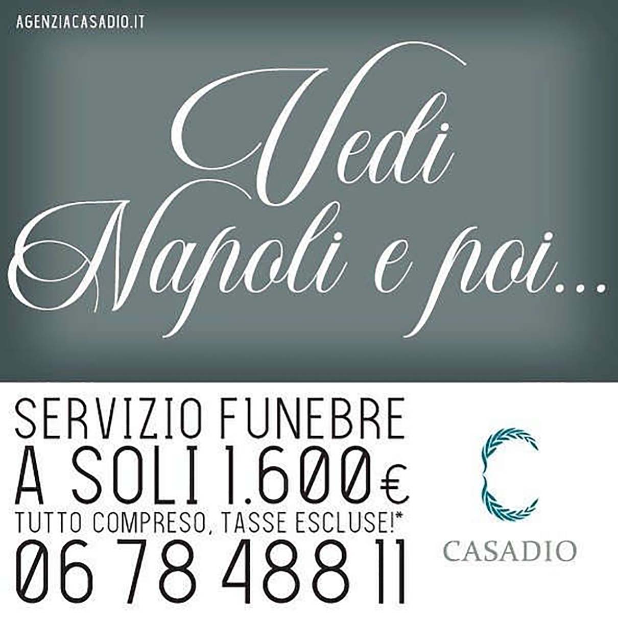 Non è la prima volta che l’Agenzia funebre, con sede nella Capitale, sceglie di diffondere manifesti di questo genere. Sulla pagina Facebook di Casadio, infatti, ci sono diversi post che lo confermano: “Ci teniamo al tuo riposo… ma non progettiamo materassi” si legge tra i tanti. Oppure: “Vedi Napoli e poi…”