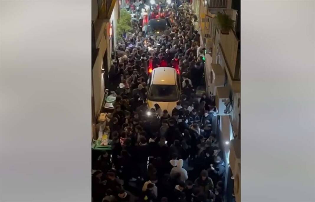 “Sono le 00:46 in Vico Belledonne in prossimità dell’incrocio Bisignano/Alabardieri, le auto (con permesso Ztl) circondate dalla folla sono ferme aspettando che qualcuno decida di spostarsi, cosa assai difficile quando in tanti sono premuti gli uni contro gli altri, per consentire un piccolo avanzamento che avvicinerà a casa lo sprovveduto residente che ha pensato di avere anche lui il diritto di uscire e passare una serata fuori per sfuggire al rumore che inesorabile sale dalla strada.”- è la denuncia su Facebook del Comitato “Chiaia Viva e