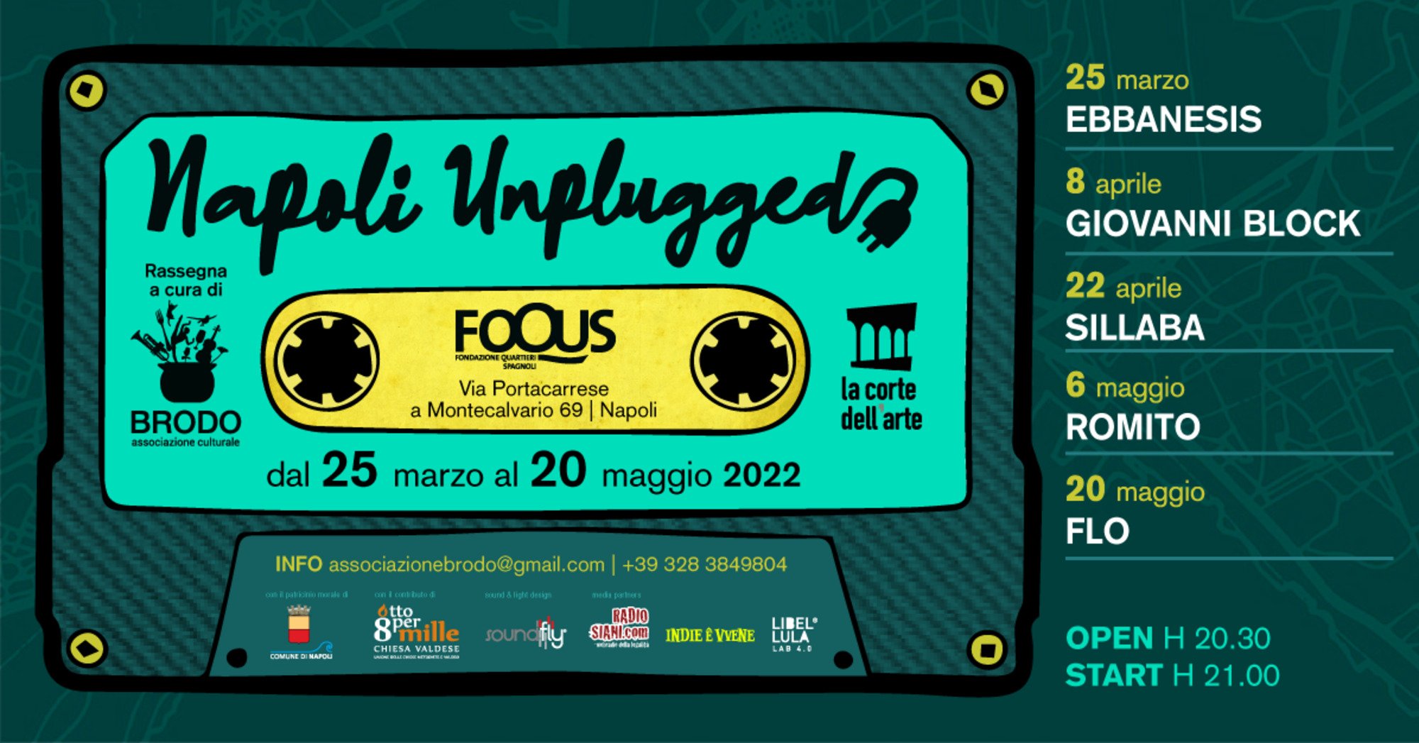 La prima edizione di Napoli Unplugged, la rassegna di musica d'autore, si svolgerà dal 25 marzo al 20 maggio p.v. presso la Corte dell'Arte della Fondazione Quartieri Spagnoli, meglio conosciuta come FOQUS, nel cuore dei Quartieri Spagnoli.