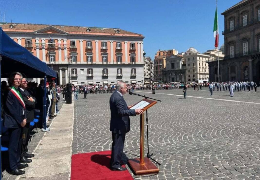 ore 11.00 – in Piazza del Plebiscito, ha avuto luogo la cerimonia dell’Alzabandiera, con schieramento del reparto interforze, nel corso della quale il Prefetto Claudio Palomba ha dato lettura del messaggio del Presidente della Repubblica.