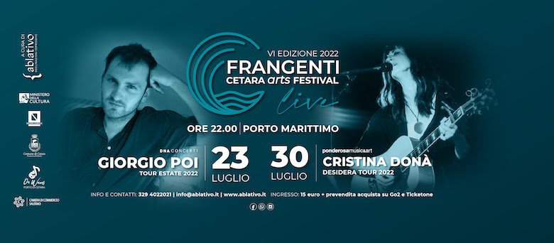 I primi due imperdibili eventi di Frangenti – Cetara Arts Festival sono i concerti esclusivi di due tra i musicisti e cantautori più rinomati della scena contemporanea cantautorale: il 23 luglio Giorgio Poi e il 30 luglio Cristina Donà, entrambi in scena nell’area del bacino portuale, recentemente ampliata con la realizzazione di un’arena per lo spettacolo dal vivo.