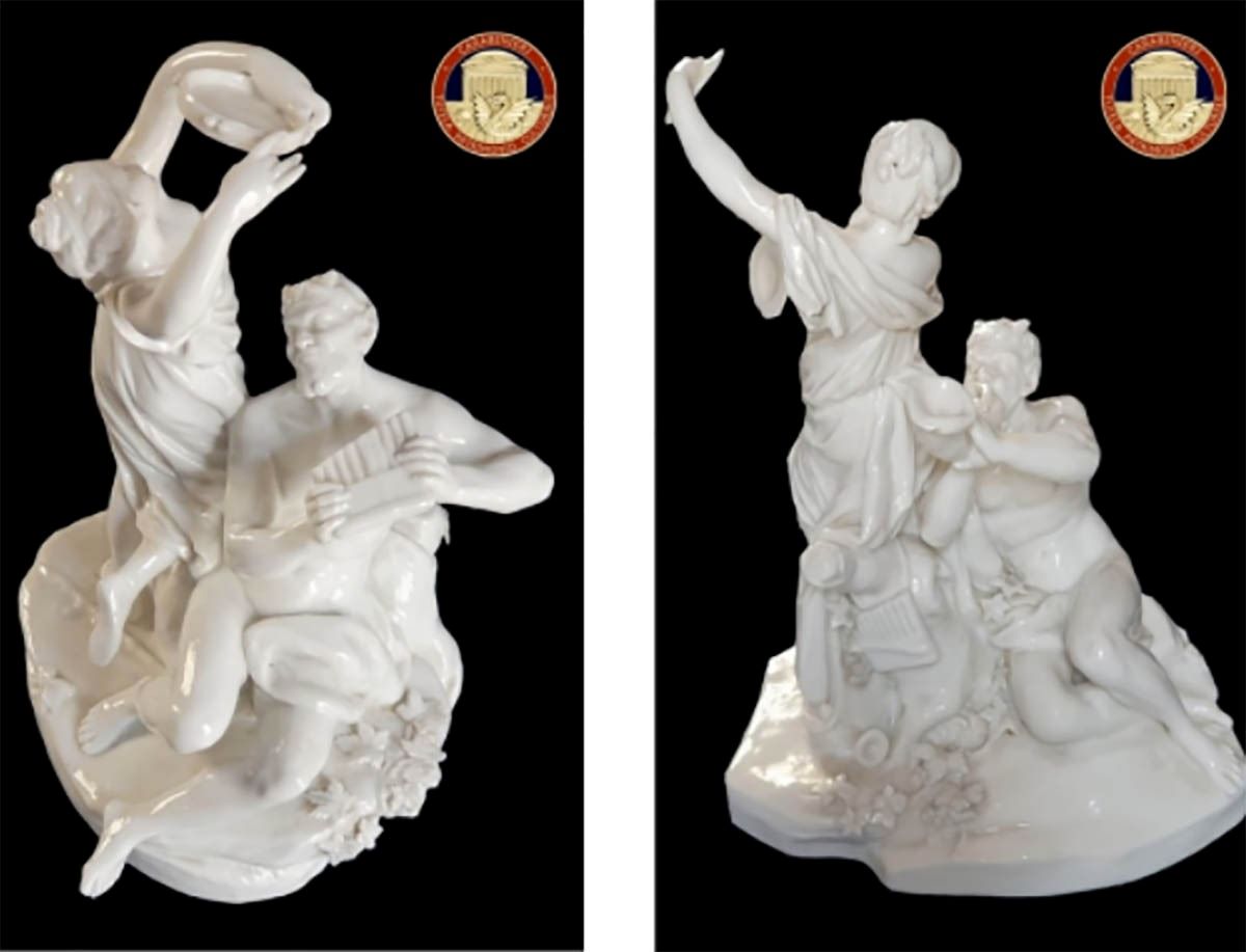 Le sculture, di manifattura napoletana, sono state realizzate in ceramica bianca nell’Ottocento e sequestrate a luglio 2020 dai Carabinieri TPC di Napoli al titolare di un negozio di antiquariato di Roma, in quanto provento di un furto denunciato a marzo 2018 dal Direttore del Museo Civico Gaetano Filangieri.