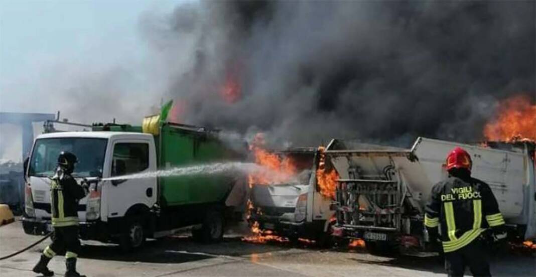 Ad andare a fuoco sono stati cinque mezzi pesanti per la raccolta dei rifiuti ed un container abitativo che hanno generato una colonna di fumo nero che ha invaso tutta l’area circostante ed era ben visibile da molti km. L’azione repentina dei Vigili del Fuoco ha fatto si che l’incendio venisse confinato e spento senza propagarsi agli altri mezzi pesanti parcheggiati vicino. Non sono state coinvolte persone nell’incendio e le cause sono ancora da accertare.