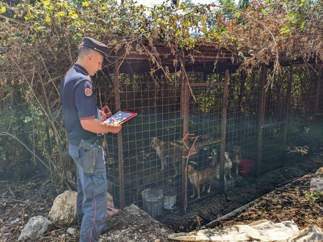 Animali in grave sofferenza di natura fisica e psichica in un canile a Roccaromana: i militari della Stazione Carabinieri Forestale di Pietramelara sono intervenuti in provincia di Caserta a seguito di segnalazione da parte dell’A.S.L. Veterinaria alla frazione “Statigliano”, Contrada Costa, dove hanno accertato la presenza di otto cani adulti tipo segugi, di diverse varietà, quattro maschi e quattro femmine, una delle quali con cinque cuccioli nati da pochi giorni.