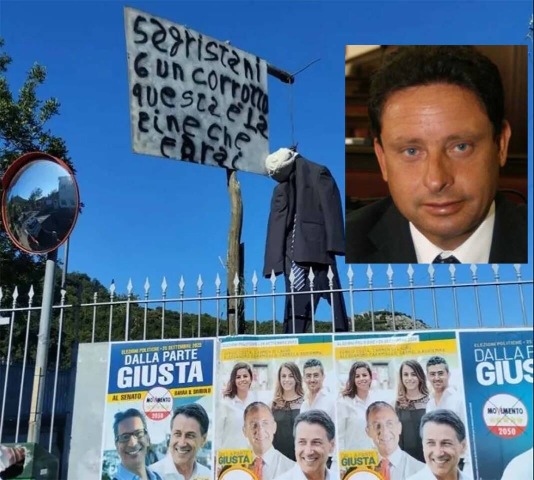 Il destinatario della minaccia è Piergiorgio Sagristani, sindaco di Sant’Agnello (Napoli), piccolo comune della Penisola sorrentina alle porte di Sorrento. Il manichino è stato esposto questa mattina in località Colli di Fontanelle da parte di qualcuno che lo stesso Sagristani definisce “esagitato o isterico burlone”.