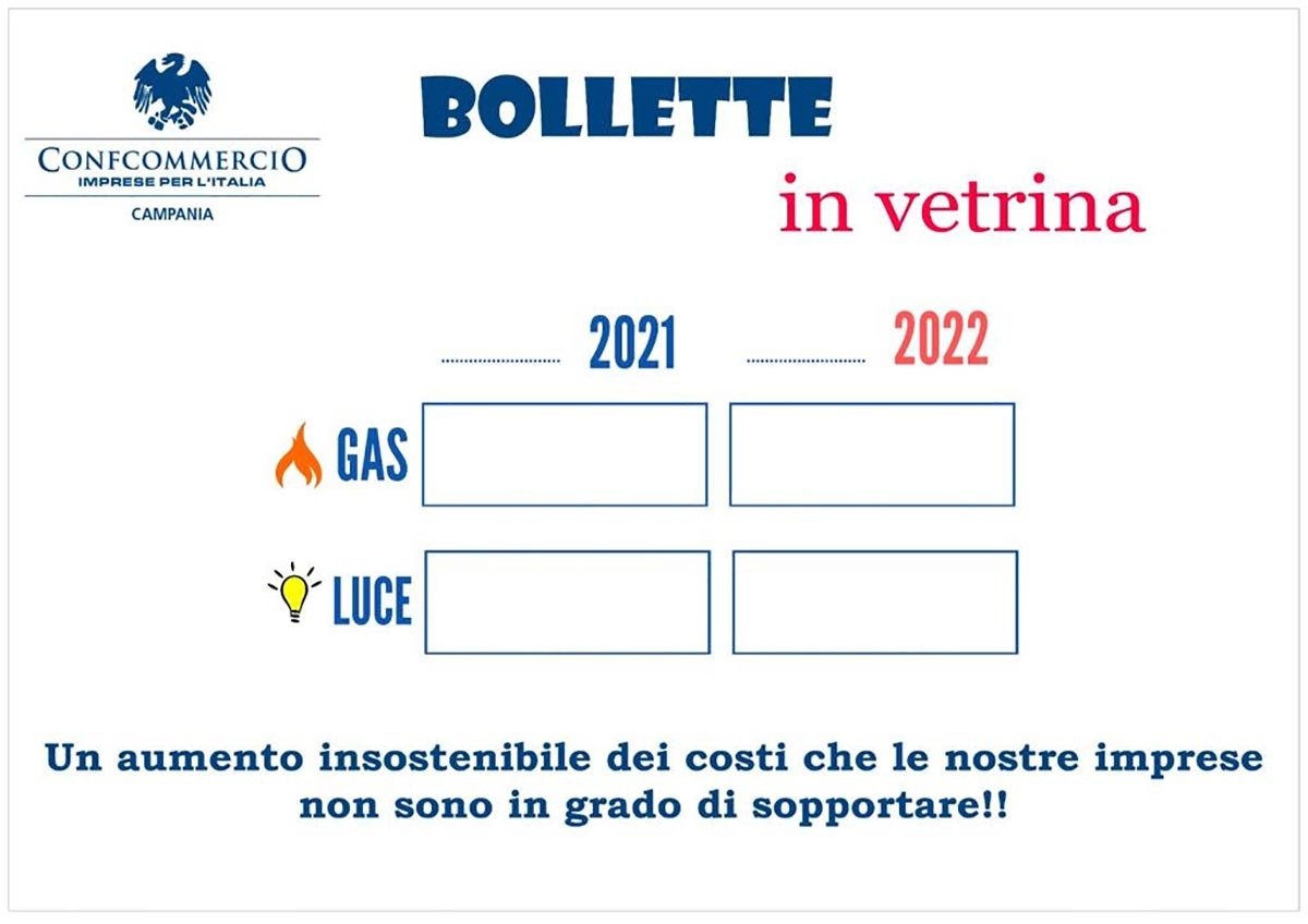 Salerno, la protesta di Confcommercio con le “Bollette in Vetrina”: bollette triplicate rispetto a un anno fa.