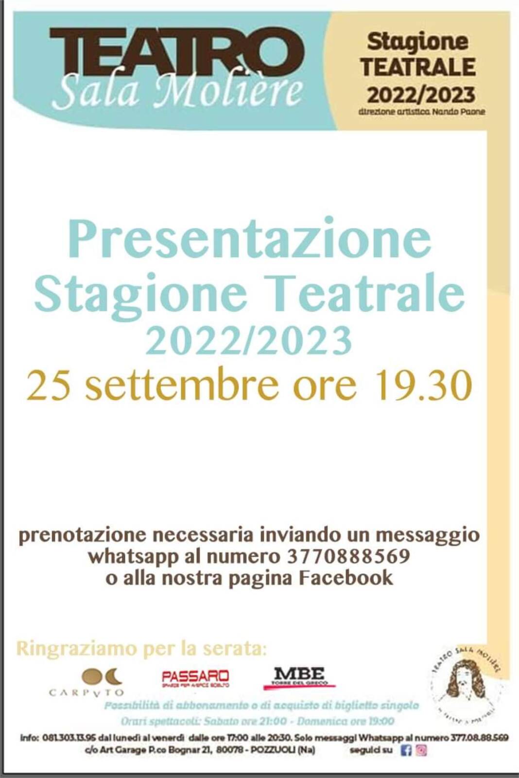 La dodicesima stagione del Teatro SalaMolière (ARTGARAGE – Via Bognar 21 – Pozzuoli), inizierà ufficialmente sabato 8 (ore 21,00) e domenica 9 ottobre (ore 19,00) con lo spettacolo “Se so rotte ‘e giarretelle” di e con Amedeo Colella, insieme alla musica di Francesco Cuomo.