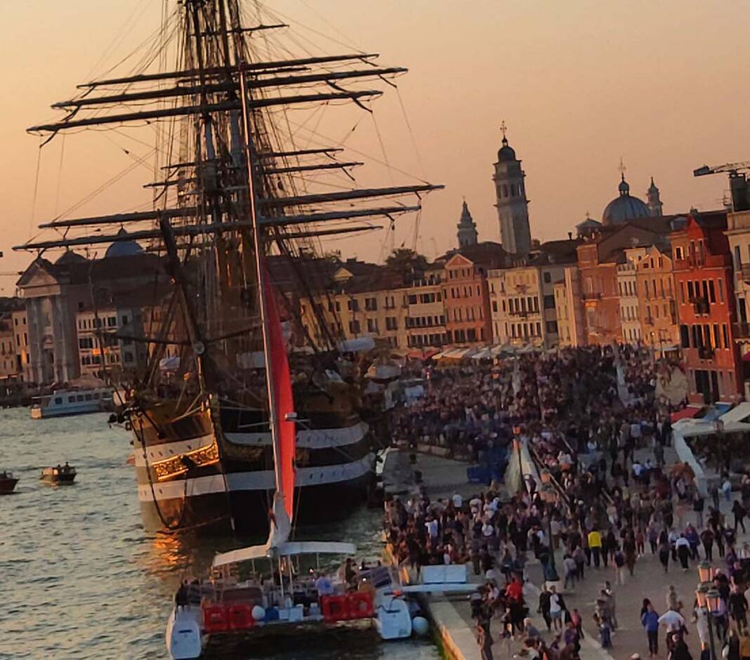 Un catamarano si è scontrato l’altra sera sul molo di Venezia contro la nave scuola,Amerigo Vespucci, la più bella del mondo e orgoglio della Marina italiana.
