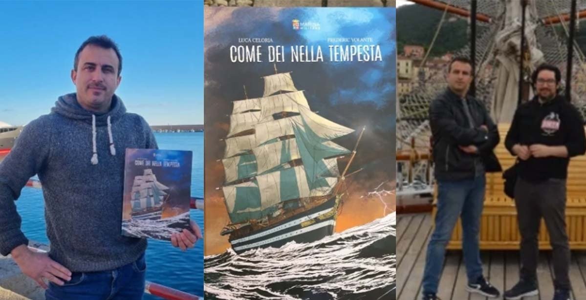 Luca Celoria, 46 anni, sceneggiatore e Frederic Volante, 47 anni, fumettista, entrambi di Imperia hanno realizzato un fumetto sulla nave scuola Amerigo Vespucci. Si tratta di un volume dal titolo ‘Come dei nella tempesta’ edito dalla Marina Militare Italiana.