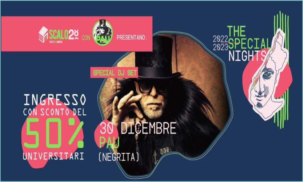 Un microfono in una mano, un disco nell’altra. Pau, cantante dei Negrita, si dedica al mixaggio dei dischi, dando vita a un dj set dal ritmo tribale, rock, patchanka, reggae e folk con il solo intento di far impazzire la pista. Da sempre poliedrico e pieno di interessi diversi, Pau non poteva farsi scappare l’occasione di suonare la musica che più gli piace senza troppi limiti, nel locale di cui cura la direzione artistica e nel quale ha fatto arrivare ad esibirsi nomi di calibro internazionale come Dave Rowntree dei Blur e Mike Joyce degli Smiths .
