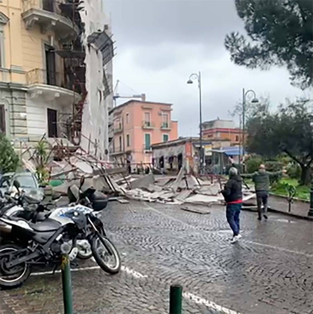“Non è possibile – conclude – che a Napoli, quando c’è il maltempo, dal cielo piova di tutto. Persino le impalcature, che solo per fortuna, non hanno coinvolto pedoni o auto in transito”.