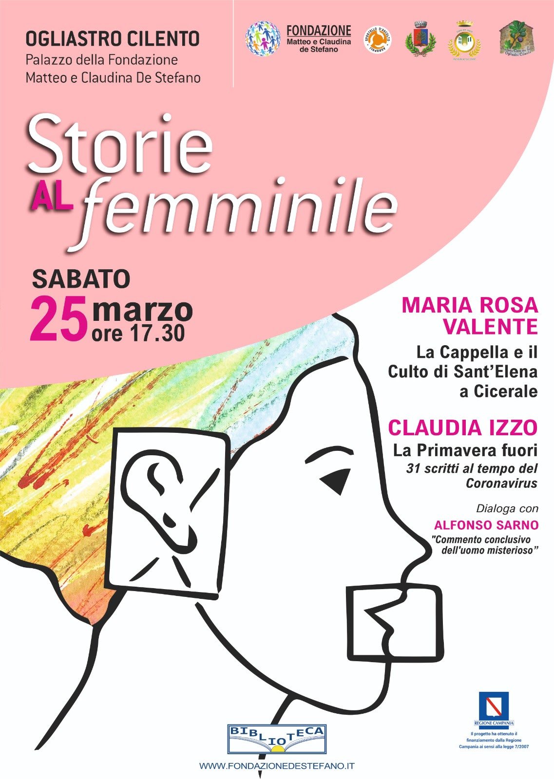 Doppio appuntamento alla Fondazione de Stefano di Ogliastro Cilento, sabato 25 marzo, alle 17:30 con due ospiti a confronto, che saranno protagoniste di due racconti intimi ed emozionanti.