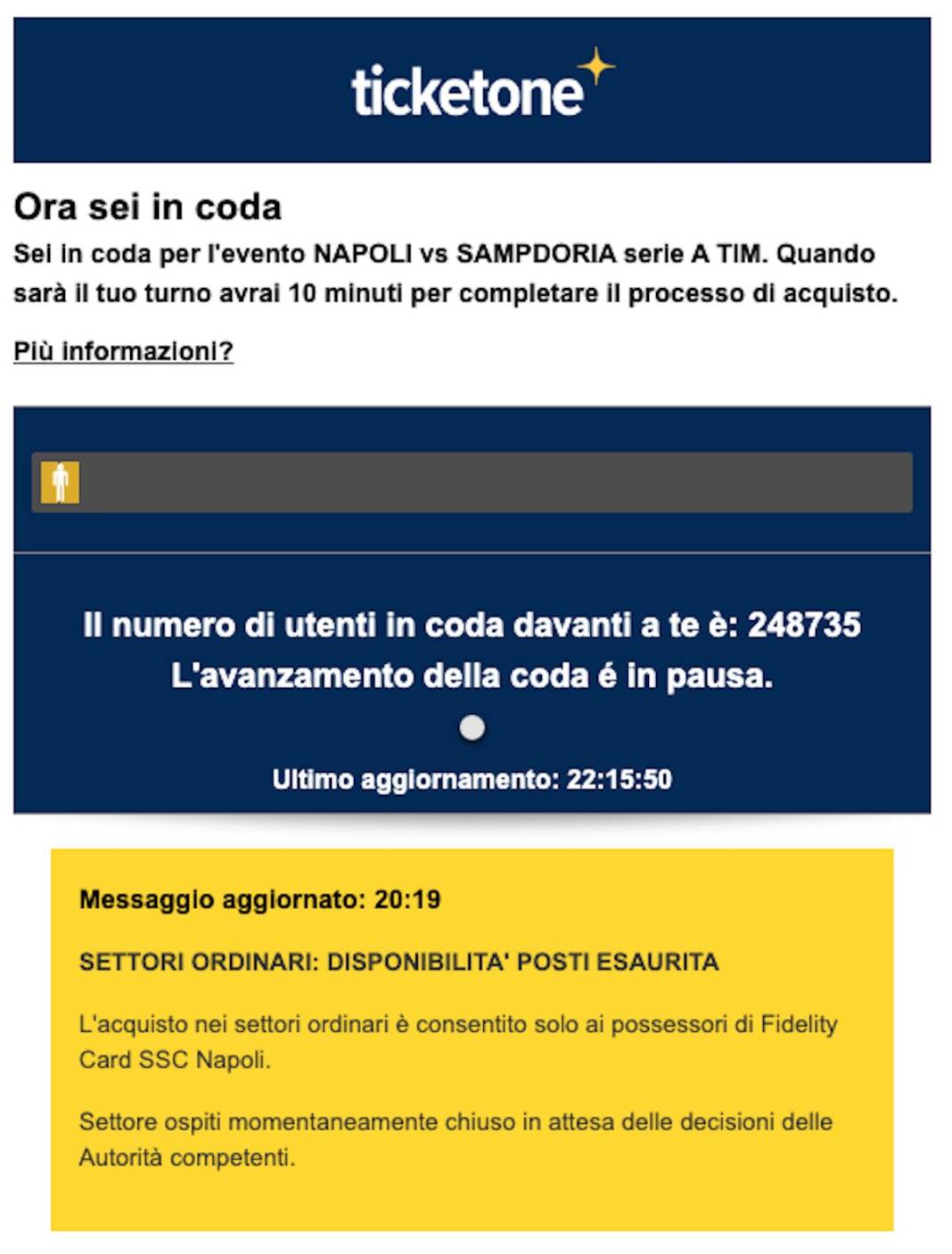 Stiamo lavorando per tornare online il prima possibile.Ci scusiamo per il disagio”, si leggeva poco dopo la messa in vendita dei tagliandi.