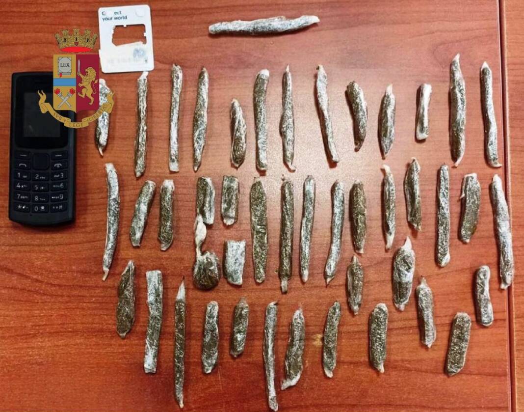 I poliziotti, giunti sul posto, hanno visto l’auto segnalata ed il conducente, alla loro vista, è sceso dal veicolo nel tentativo di eludere il controllo ma è stato bloccato; inoltre, hanno rinvenuto nella vettura 45 stecche di hashish del peso di circa 100 grammi ed un telefono cellulare.