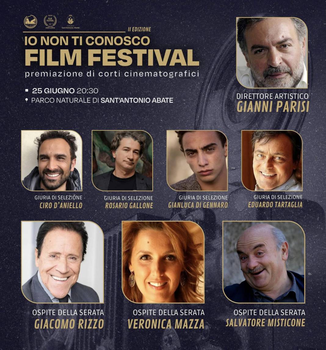 Oltre 90 cortometraggi arrivati da tutta Italia, 11 categorie da premiare e 10 corti approdati alla serata finale. A Sant’Antonio Abate torna “Io Non Ti Conosco Film Festival”, la kermesse tutta abatese giunta alla sua seconda edizione. Tra red carpet e atmosfera hollywoodiana, il festival del corto – organizzato dall’Associazione Culturale e Teatrale Io Non Ti Conosco e patrocinato dal Comune di Sant’Antonio Abate – si svolgerà domenica 25 giugno con due momenti importanti, ospiti importanti e una giuria d’eccezione.