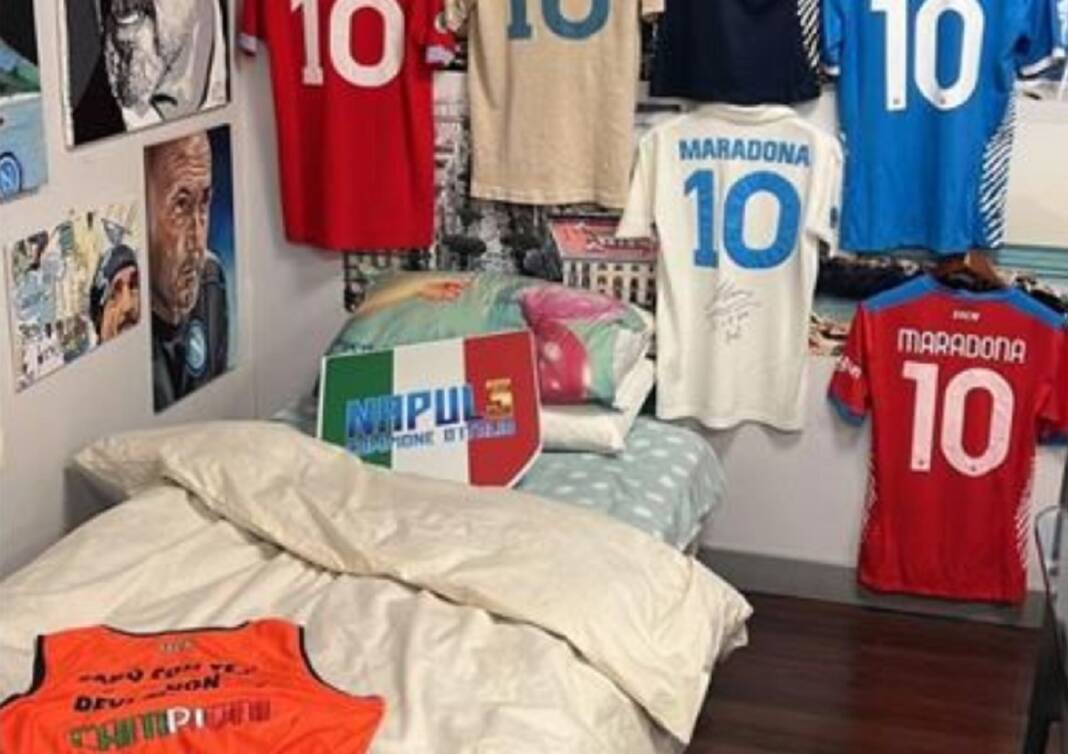 Dallo scudetto sul braccio allo scudetto nel suo letto. Luciano Spalletti non smette di seminare entusiasmo pur dopo l’addio al Napoli, piazza salutata ufficialmente nella giornata di domenica scorsa dopo la partita vinta contro la Sampdoria e la festa scudetto con i tifosi.Il tecnico ha postato su Instagram una foto del suo letto con il cartonato raffigurante il terzo scudetto adagiato sotto le coperte e le pareti abbigliate con le varie magliette di Maradona. “Si è già preso il mio lettino – scrive -. Stanotte mi sa che dovrò dormire nella Panda”.