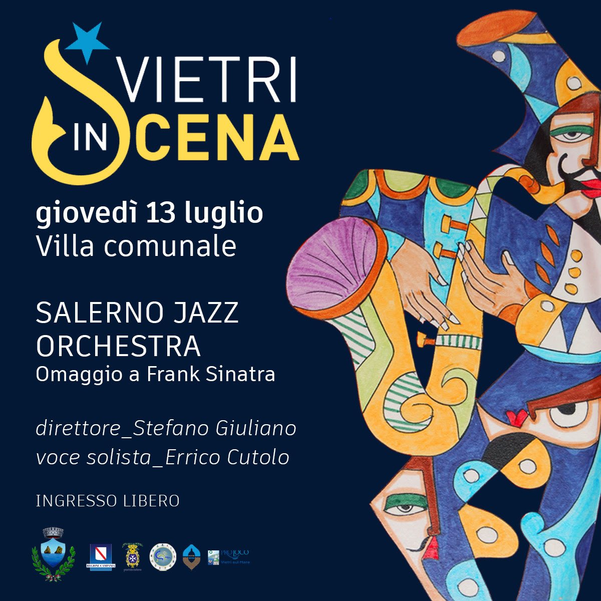 Imperdibile concerto jazz giovedì 13 luglio alle ore 21 nell’arena della Villa comunale di Vietri sul Mare. Ad esibirsi, nell’ambito del cartellone di “Vietri in Scena”, voluto dell’amministrazione comunale diretta dal sindaco Giovanni De Simone e firmato dal direttore artistico il maestro Luigi Avallone, la “Salerno Jazz Orchestra”, diretta da Stefano Giuliano. La Salerno Jazz Orchestra presenterà un omaggio al cantante Frank Sinatra che ha segnato un’indelebile linea sonora, nell’ambito della musica jazz, per la sua capacità di interpretare in modo originale i brani della tradizione afro americana; per l’occasione ospite della SJO sarà il cantante italo-londinese Errico Cutulo.