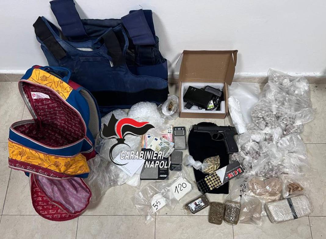 Ma nell’appartamento i Carabinieri non hanno trovato solo droga. Sequestrate 35 cartucce 9×21, 29 cartucce lugar 9×19, 1 passamontagna,1 pistola a salve, 1 bilancino di precisione, diverso materiale per il confezionamento dello stupefacente e la somma di 680 euro. Trovati, su un terrazzo a loro in uso, anche 2 giubbotti antiproiettile.