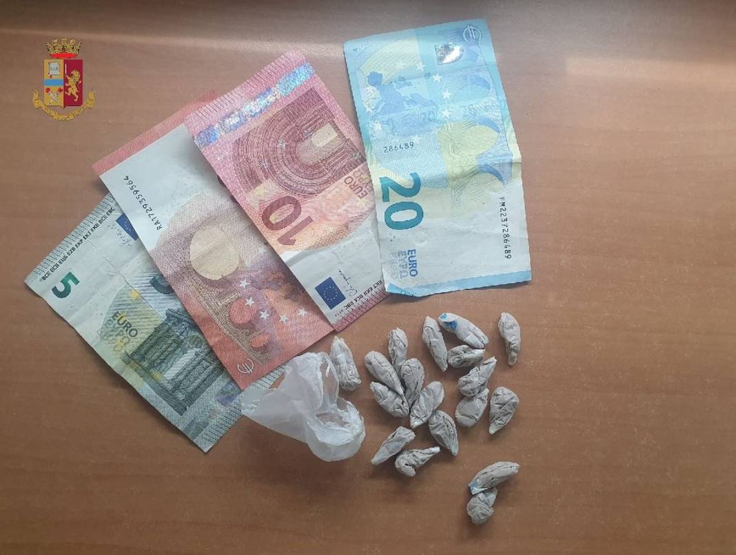 Pertanto, i poliziotti sono prontamente intervenuti ed hanno bloccato il prevenuto trovandolo in possesso di 45 euro, evidente provento dell’illecito perpetrato; ancora, le attività in questione sono state estese all’interno dell’immobile dove sono stati rinvenuti 18 involucri di eroina del peso di circa 5,5 grammi.