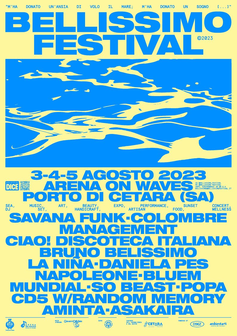 È con i versi del compianto Mario Benincasa, saggista e poeta, che Cetara presenta il “Bellissimo Festival” per una tre giorni di puro divertimento con musica, expo e fitness. Prodotto da Dissonanze s.r.l.s. e dall’associazione culturale ambientarti, con il sostegno del Comune di Cetara, il festival si prepara letteralmente a cavalcare l’onda della contemporanea italo-wave con una line-up che intende valorizzare ed esaltare il panorama dell’Arena del Porto, uno spazio unico nel suo genere per la straordinarietà della posizione e del panorama.