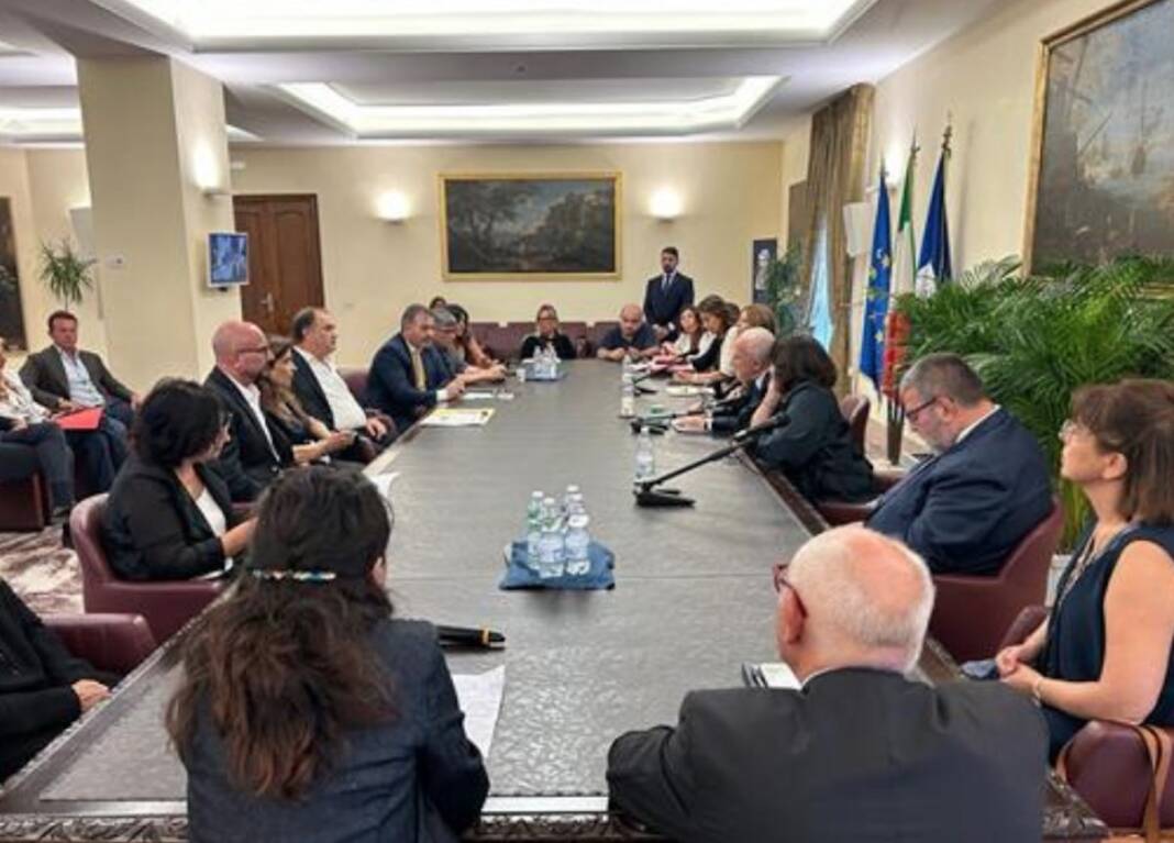 A Palazzo Santa Lucia, sede della Regione Campania, riunione convocata dal governatore Vincenzo De Luca per affrontare i problemi concreti emersi dalle vicende drammatiche del Parco Verde di Caivano, con le violenze ai danni di due ragazzine, e per mettere in piedi un programma di interventi per il Comune e il territorio.