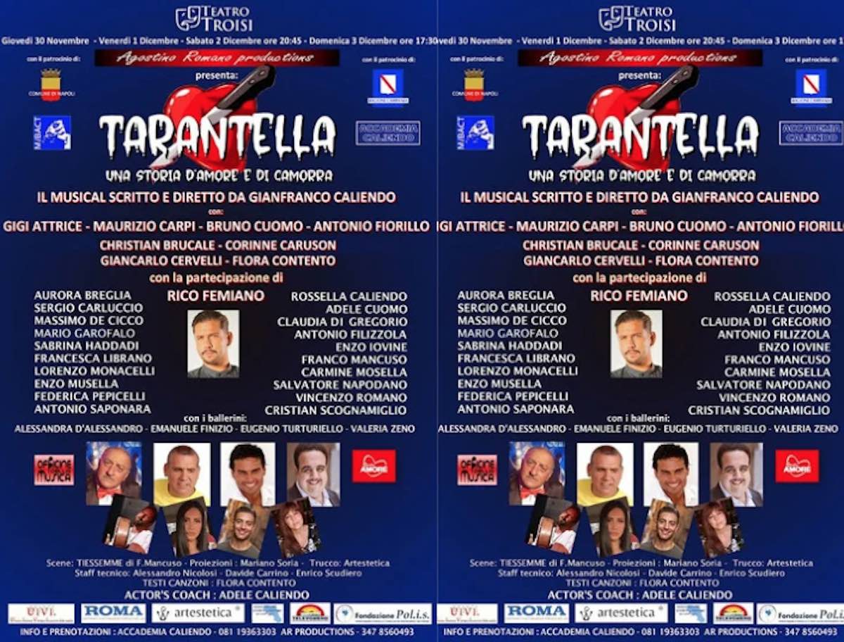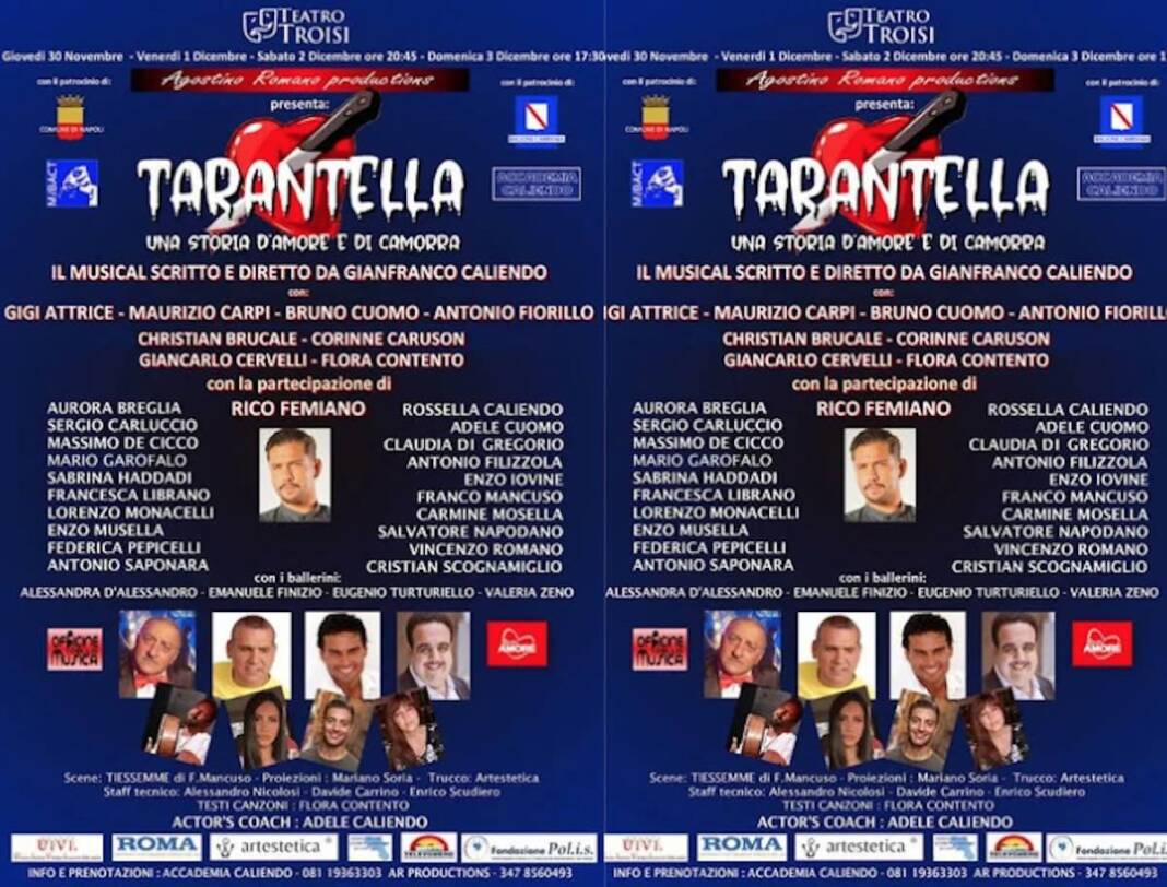 E’ questo il “sunto” di Tarantella – Una storia d’amore e di camorra, il nuovo musical interamente scritto, diretto e musicato dal cantautore Gianfranco Caliendo e prodotto da Agostino Romano (Associazione Culturale Fatti Santo). Tarantella è un musical molto particolare, caratterizzato dall’impalcatura di una vera e propria “sceneggiata” e scandito da una lunga serie di brani inediti dallo stile atipico ed accattivante.