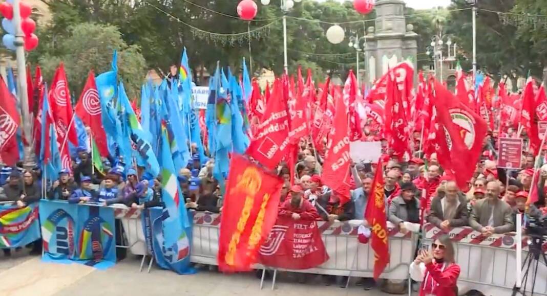 “Qui – ha proseguito il segretario generale – si sta ponendo una questione nazionale, il tema che questo Governo e anche altri hanno dimenticato: non esiste una crescita dell’Italia se il Mezzogiorno continua ad essere senza lavoro, senza diritti, senza strutture”. “Negli ultimi vent’anni – ha ricordato dal palco in piazza Matteotti – sono stati 800mila i giovani del Mezzogiorno, di cui più di 300mila laureati e diplomati, che se ne sono dovuti andare dal Mezzogiorno per vivere e lavorare all’estero o in altre zone del Paese.