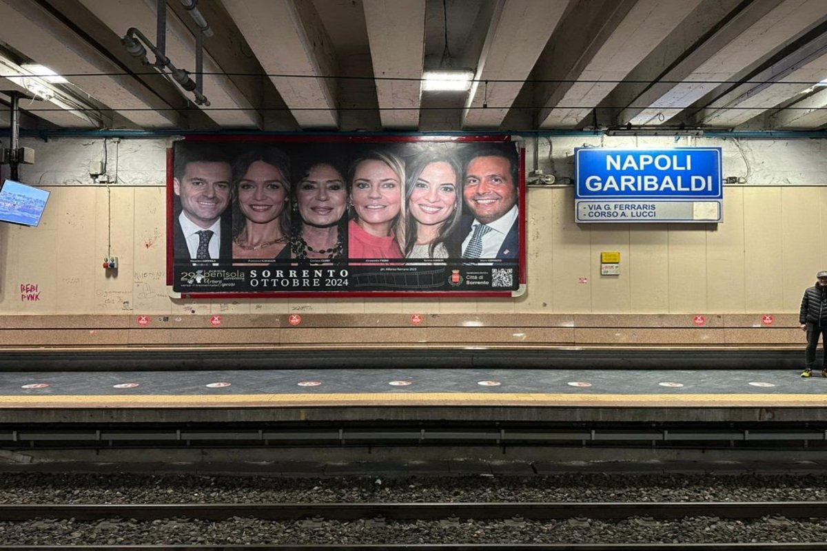 Alla stazione di Napoli Garibaldi l’annuncio dell’edizione 2024 del Premio Penisola Sorrentina, con un poster murale istituzionale dedicato alle donne che ne evidenzia ruolo ed importanza.
