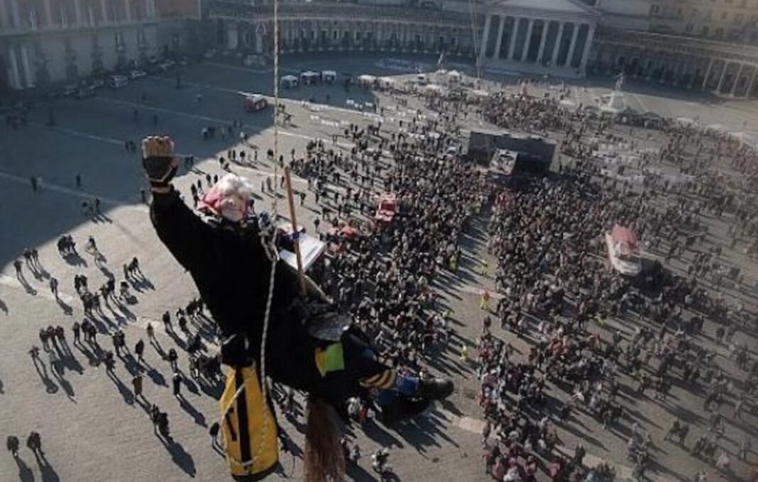 Questa mattina a Napoli, per la gioia dei numerosi bambini radunati in piazza Plebiscito, è arrivata la Befana, che, cavalcando la sua scopa, si è abbassata dalla facciata di Palazzo Reale lanciando caramelle. Dopo alcuni anni di interruzione, l’evento è stato ripristinato grazie all’iniziativa dei vigili del fuoco.