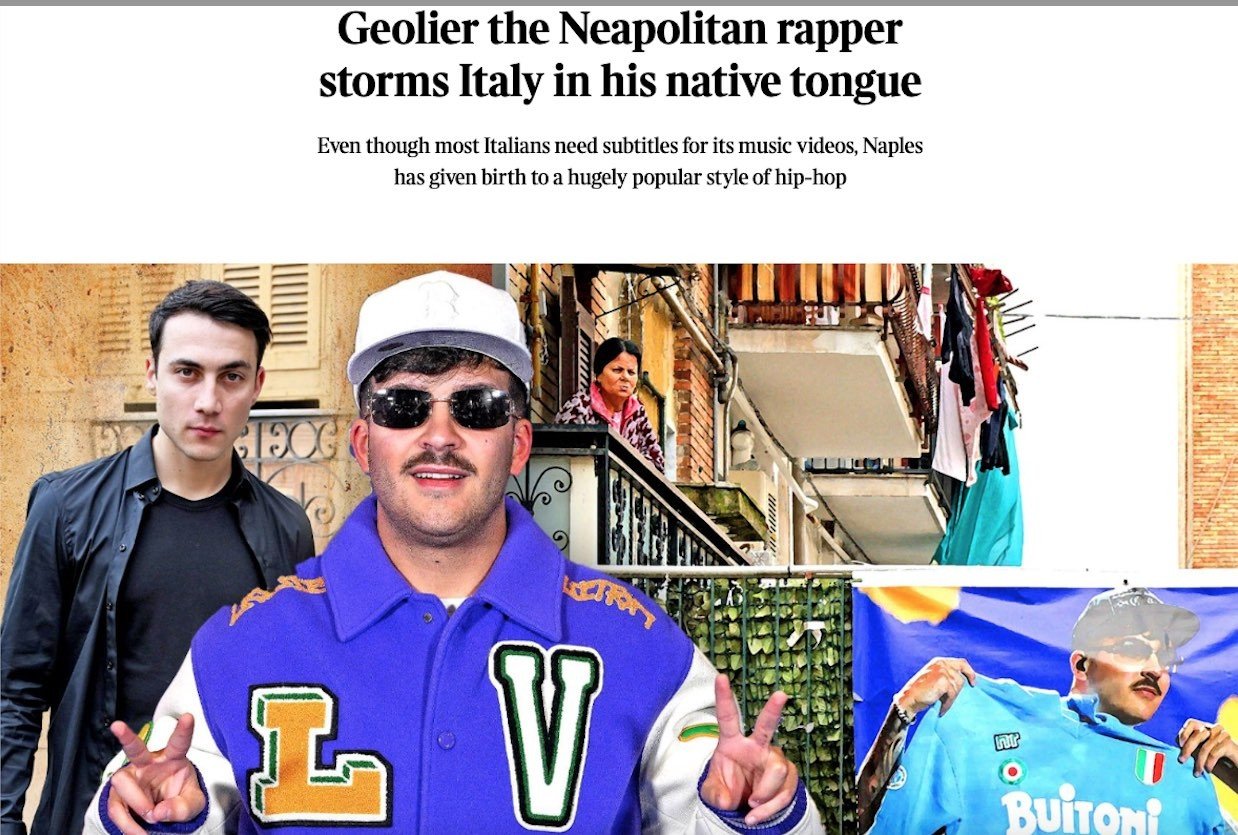 Mentre in rete impazza il toto traduzione della hit vincitrice per il voto popolare del Festival di Sanremo 2024 ovvero “I p’ me , tu p’ te” di Geolier con traduzioni dalla lingua napoletana dei giovani ai più disparati dialetti italiani e poi in altre lingue come inglese e spagnolo c’è l’autorevole The Times che gli dedica un articolo dal titolo: “Geolier il rapper napoletano, una tempesta sull’Italia nella sua lingua natale”.