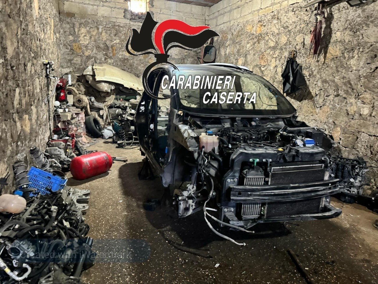 I Carabinieri hanno fatto irruzione in una casa colonica di Carinola dove i 4 uomini stavano smontando l’auto.