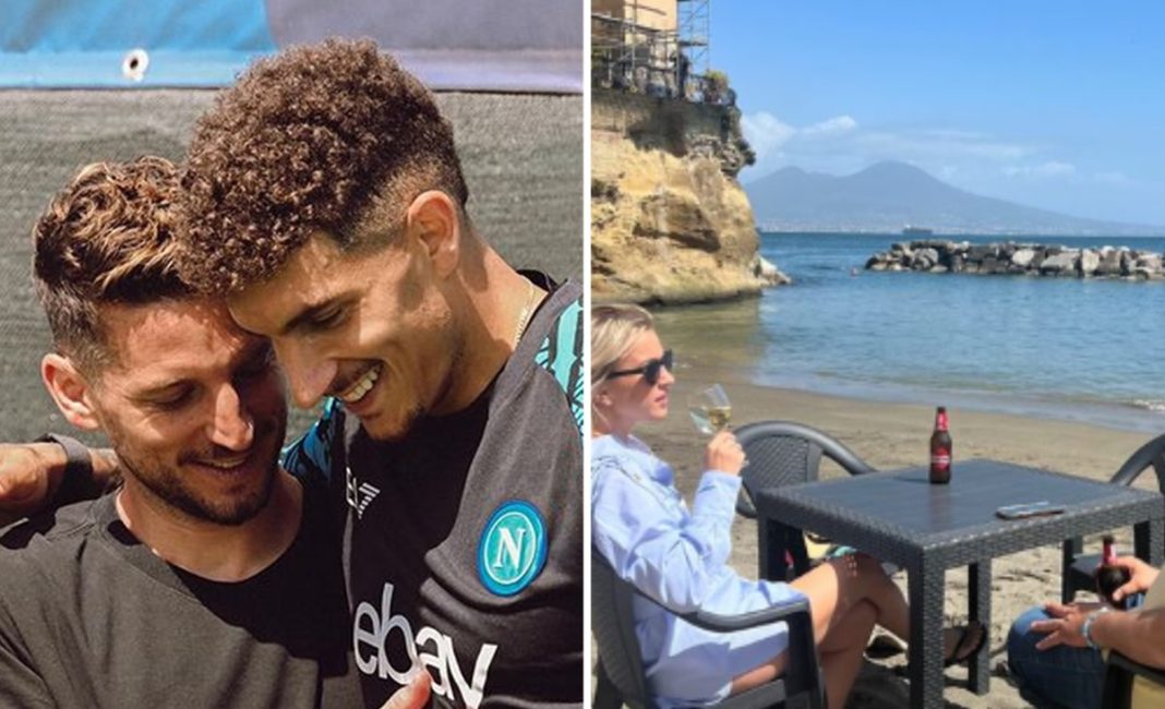 Una foto pubblicata dal calciatore belga su Instagram lo ritrae al Lido Serena a Posillipo, con il maestoso Vesuvio sullo sfondo, mentre si gode una birra Peroni in compagnia della moglie Kat e di alcuni amici, godendosi una giornata di relax sulla spiaggia.Ma la sorpresa più grande è stata riservata ai suoi ex compagni di squadra del Napoli.