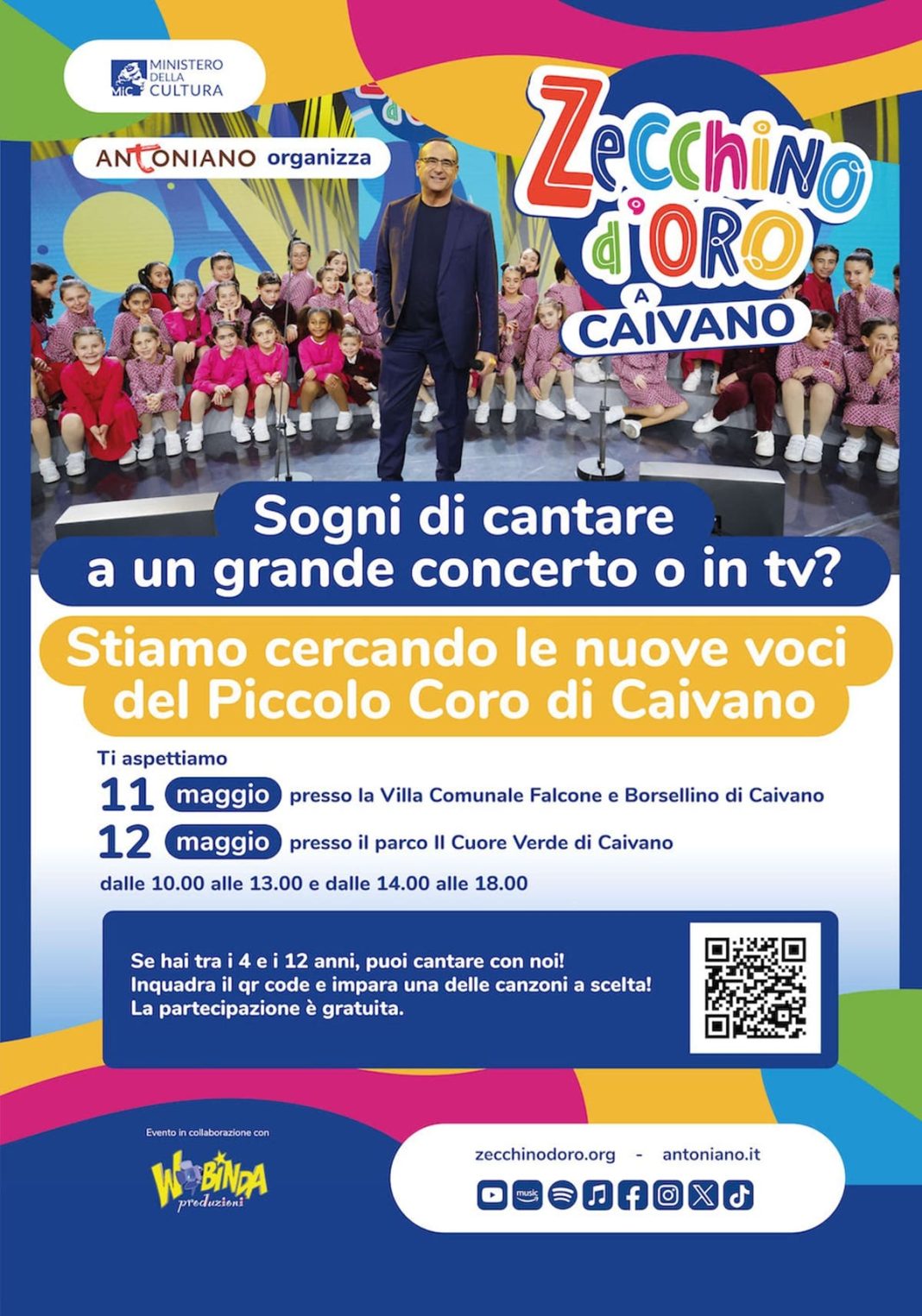Le audizioni avranno luogo a Caivano (Napoli) il 11 maggio presso la Villa Comunale Falcone e Borsellino, e il 12 maggio nel Parco “Il Cuore Verde”. Le sessioni si svolgeranno dalle 10:00 alle 13:00 e dalle 14:00 alle 18:00, offrendo ampie possibilità di partecipazione. È importante sottolineare che la partecipazione è gratuita e non è necessario avere esperienza pregressa in musica o canto.