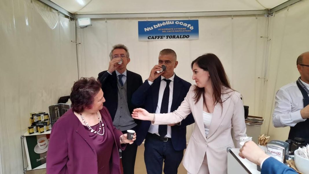 Evento “Nu bbèlluccafè”: il sindaco Manfredi si gusta un caffè allo stand di Toraldo