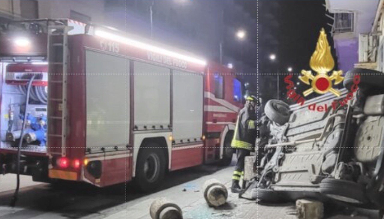 Secondo una prima ricostruzione, l’auto, per cause ancora da accertare, ha sbandato urtando e divelto alcuni dissuasori sul marciapiede prima di schiantarsi contro la vetrina del negozio.