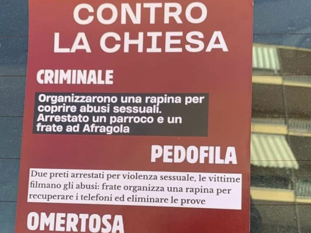 In città da ieri stanno circolando volantini contro la chiesa a seguito dello scandalo che ha coinvolto la basilica di Sant’Antonio.