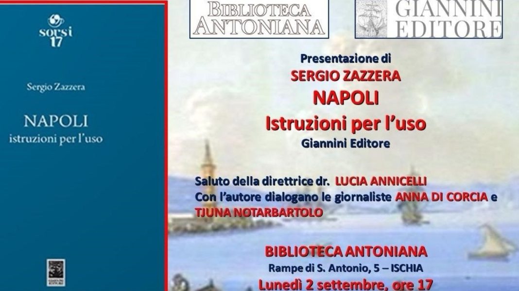 Nella suggestiva cornice dell’isola di Ischia, lunedì 2 settembre presso la Biblioteca Antoniana, Sergio Zazzera presenterà il suo ultimo libro “Napoli istruzioni per l’uso”. L’evento inizierà con i saluti di Lucia Iannelli, per poi proseguire con un interessante dialogo tra l’autore e le giornaliste Tiuna Notarbartolo e Anna Di Corcia.
