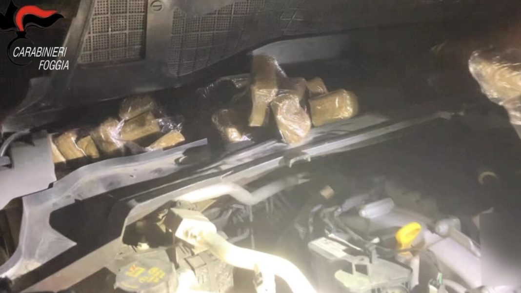 Durante l’identificazione, l’uomo e la donna apparivano visibilmente nervosi. La successiva perquisizione ha portato alla scoperta di 15 chili di hashish, suddiviso in panetti da un etto ciascuno, nascosto nel portabagagli e in comparti ricavati nelle prese d’aria. Entrambi sono stati arrestati.