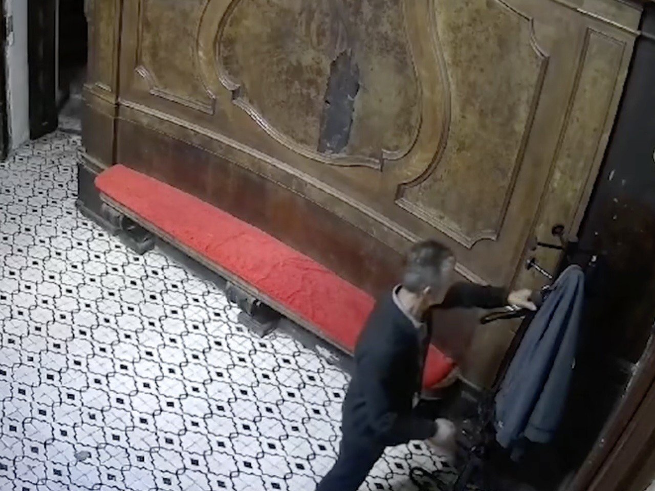 Le riprese mostrano il ladro nella sacrestia mentre, dopo aver osservato la stanza, si avvicina a un attaccapanni e prende un borsello appeso. Il video è stato inviato a Borrelli, deputato di Alleanza Verdi Sinistra.