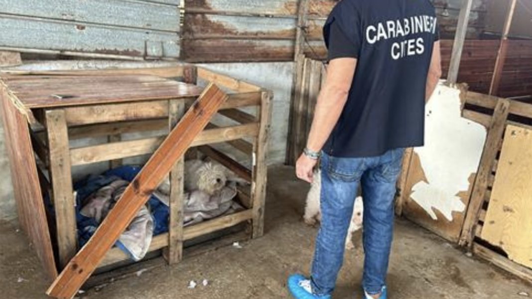 Le indagini hanno rivelato che le condizioni di detenzione dei 32 cani erano incompatibili con il loro benessere. L’allevamento presentava gravi carenze igienico-sanitarie e strutturali, con presenza di deiezioni animali, coperture precarie in lamiera e legno, coperte sporche, e cuccioli sistemati in cartoni e cassette della frutta.