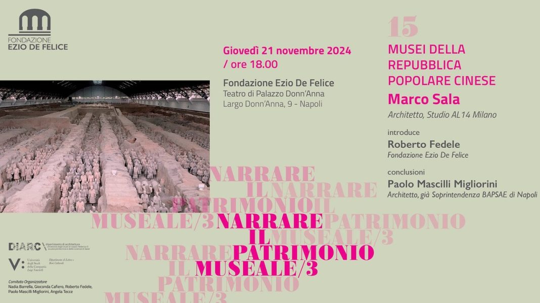 Dopo l’incontro di apertura con Gabriel Zuchtriegel, Direttore del Parco Archeologico di Pompei, è atteso il contributo di Marco Sala, architetto dello Studio AL14 di Milano. Sala condurrà una sessione esplorativa sui musei della Repubblica Popolare Cinese. L’introduzione dell’evento sarà curata da Roberto Fedele della Fondazione De Felice, mentre le conclusioni sono affidate a Paolo Mascilli Migliorini.