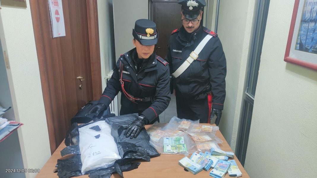 A quel punto i militari decidono di intervenire e infatti il fiuto non li tradisce: nelle valigie ci sono circa 11 chili di cocaina, nelle tasche di uno dei due uomini 13 mila euro in 650 banconote da 20 euro.