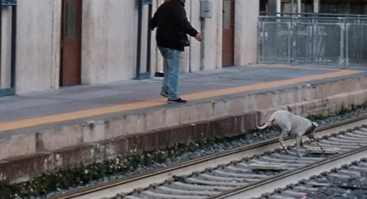 Maddaloni, orrore alla stazione: uomo prende a calci una cagnolina e la getta sui binari