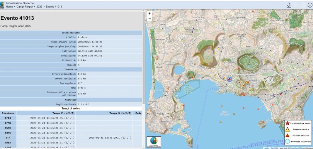 Trema anche oggi la terra nella zona flegrea: un nuova scossa di terremoto di magnitudo 2.1 è stata segnalata alle 14.36 dai sismografi dell’Ingv avvertita dalla popolazione.