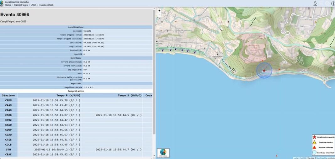 Nuova forte scossa di terremoto a Pozzuoli avvertita nitidamente dalla popolazione anche in molte zone di Napoli e infatti l’Osservatorio Vesuviano ha comunicato l’accadimento di un evento sismico di magnitudo 2,7±0,3 localizzato nei pressi di Via Napoli.