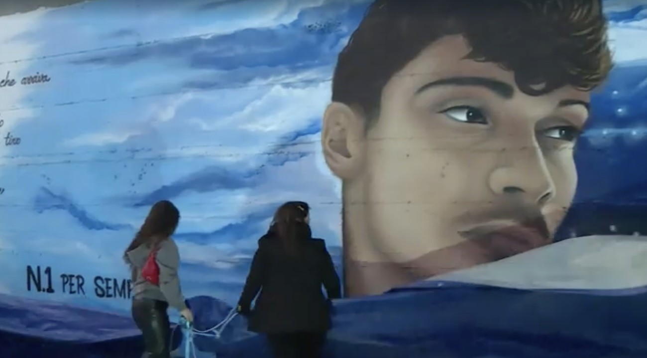 A Casoria, alle spalle della casa in cui abitava e in cui tuttora vive la famiglia, è stato svelato un murale realizzato dall’artista Alex Shot e dedicato a Santo Romano, il diciannovenne ucciso a San Sebastiano al Vesuvio nella notte tra l’1 e il 2 novembre 2024.