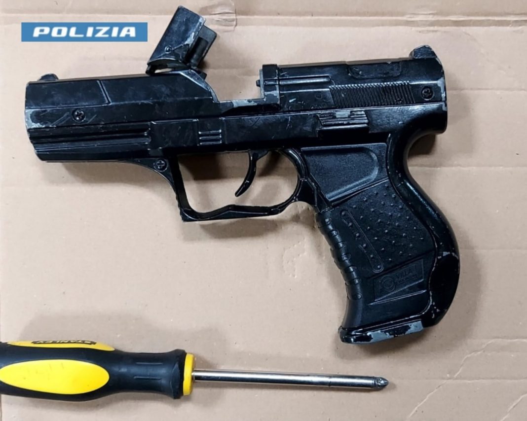 L’uomo, già noto alle forze dell’ordine per precedenti analoghi, è stato prontamente bloccato dagli agenti. Durante la perquisizione, è stato trovato in possesso di una pistola giocattolo senza tappo rosso e di un cacciavite.Gli oggetti hanno condotto all’arresto immediato del soggetto da parte degli ufficiali presenti.