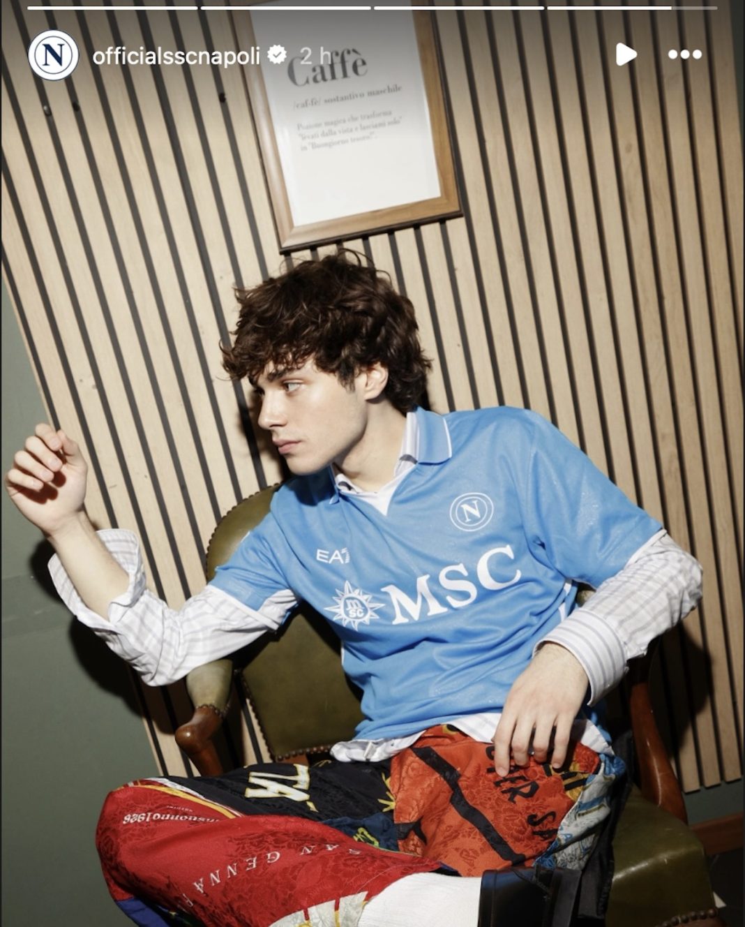 Il Napoli calcio fa il tifo per Settembre. La societa’ pubblica sui social una foto del cantante con la maglia del Napoli e la scritta “La in bocca al lupo”.