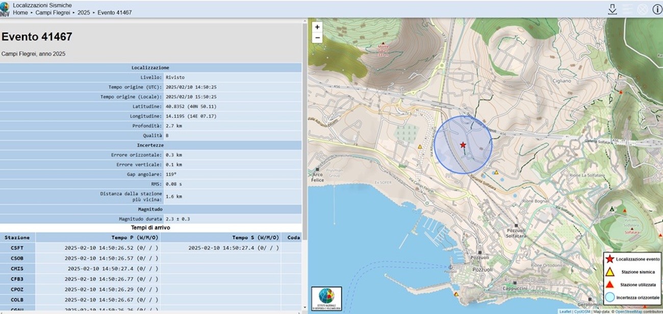 Un terremoto di magnitudo 2.3 è stato registrato dall’Osservatorio Vesuvio-Ingv nella zona dei Campi Flegrei alle 15:50 di oggi. L’epicentro a una profondità di 3 chilometri.