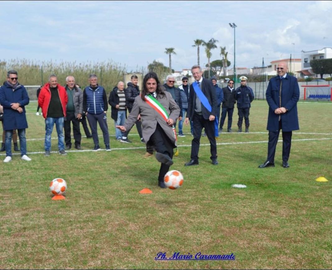 Nel pomeriggio la prima partita con le Giovanili del Napoli – accompagnate dall’ex campione d’Italia azzurro azzurro Gigi Caffarelli – insieme ai ragazzi delle scuole calcio locali. Il complesso sportivo si trova a Cuma, con vista sul lago Fusaro, la frazione più popolosa e con l’età media più giovane di Bacoli.